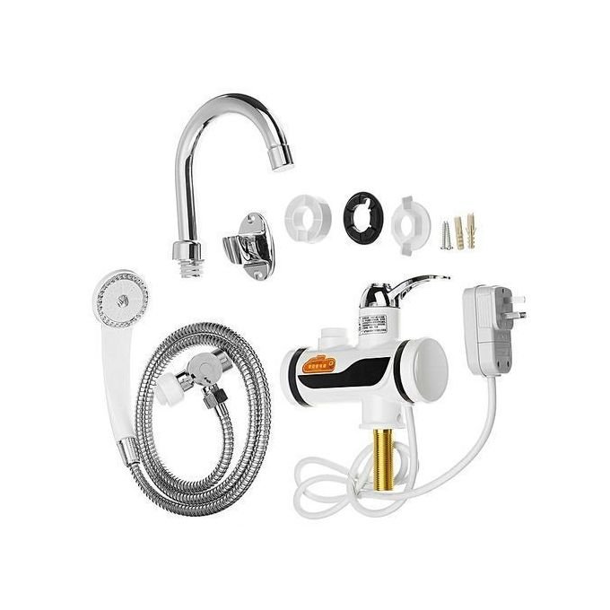 Spécifications: Le matériau principal: Acier inoxydable + Matière plastique Couleur: Argent + Blanc Bobine: Niveau de diamant Bobine en céramique La voie de l’eau: Sous l’eau Traitement de surface: placage multiple Tube de chauffage: résistance chauffante recouverte de cuivre de haute pureté Type de fiche: AU (10A 250V Tension nominale: 220V / 50HZ Puissance nominale: 2000-3000W Pression de travail: 0.04-0.4 MPA Catégorie imperméable: IPX4 Caractéristiques:Matière plastique d’ingénierie en acier inoxydable et ABS, résistante aux températures élevées,doux et fort, pas facile à éclater, stabilité de forme élevée, fort anti-estampage, rayonnement UV.Le coude du robinet peut être pivoté à 360 degrés. Il existe deux types d’affichage (en option): l’un est bleu lorsque l’eau est chauffée, l’autre est une sonde à capteur haute sensibilité intégrée, qui peut être une détection en temps réel de la température; l’affichage indiquera la température actuelle en temps réel. Conception simple, économie d’eau et d’électricité pour votre consommation domestique. Facile à utiliser et la température de l’eau réglable. Usge: utilisation du commutateur de poignéeManipulez la plage de rotation de 150 degrés, la zone d’eau chaude de 60 degrés, la zone d’eau froide de 60 degrés,dont 30 degrés cette zone pour la zone de contrôle de l’eauUtilisation de l’ indicateur Indicateur pour l’indicateur de chauffage de puissance, couleur bleue, lumière bleue que la machine est en train de chauffer Vaporisez la méthode de nettoyage habituelleOuvrez la buse, la buse inversée sous le robinet d’eau haute pression lors du prochain rinçage,les petits trous dans la buse des objets sales tels que le rouge ne peuvent pas se permettre d’utiliser une aiguille à broder.Avis: s’il vous plaît permettre erreur 1-3cm en raison de la mesure manuelle et assurez-vous que cela ne vous dérange pas avant de commander. S’il vous plaît comprendre que les couleurs peuvent exister une aberration chromatique comme le placement différent des images