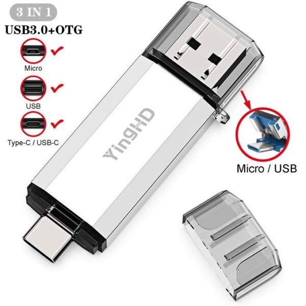 Clé USB OTG 3 En 1 64 Go Pour PC De Type C Android Argent