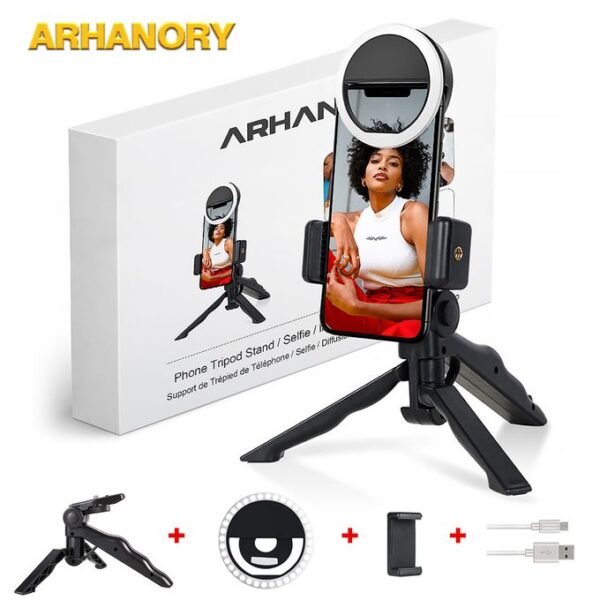 Marque:ARHANORYHauteur : 110cmMatériel: Alliage D’aluminiumCaractéristiques : Robuste / Durable / Rotation à 360°Compatible: Téléphones / Appareils photo / Anneaux lumineux