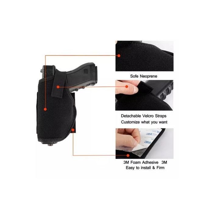 Le clip de ceinture robuste garantit que votre étui reste en place lorsque vous tirez votre arme, quelle que soit la situation.Mobile et personnalisable – Configurez votre porte de coffre exactement comme vous le souhaitez.Cet étui de pistolet peut être utilisé sous les sièges dans les véhicules / bureaux; Convient à la plupart des voitures, camions et fourgonnettes.L’étui de pistolet de voiture est fait de nylon et de matériel de plongée de haute qualité, respirant et empêche la déchirure.Les étuis de pistolet Velcro utilisent un adhésif en mousse 3M, qui est facile à installer, ferme et durable.Universel: étui IWB OWB s’adaptant naturellement aux armes de poing compactes, moyennes et grandes.Convient aux pistolets GLOCK M&P Shield Ruger LC9 Taurus Slim Line Springfield XD Series Beretta Bersa Kahr Arms Colt Walther Sig Sauer et bien d’autres pistolets.