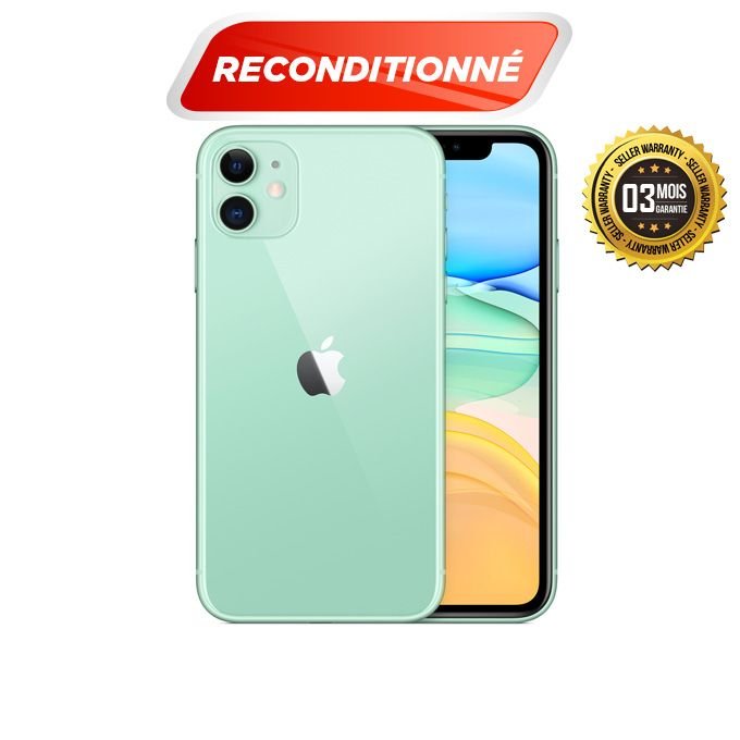 Type de produit : IphoneModèle : 11 Mémoire Rom : 64 GoMémoire Ram : 4GoSystème d’exploitation iOS 13Écran OLED Super Retina XDR 5.8″ poucesRésistant à la poussière et à l’eau (jusqu’à 4 mètres pendant 30 minutes maximum, IP68)Triple appareil photo avec ultra grand-angle, grand-angle et téléobjectif 12 Mpx, mode Nuit, mode Portrait et vidéo 4K jusqu’à 60 i/sCaméra avant TrueDepth 12 Mpx avec mode Portrait, vidéo 4K et ralentiFace ID pour l’authentification sécurisée et Apple PayPuce A13 Bionic avec Neural Engine de troisième générationFréquence du processeur : 2.65 GHzCPU : Octa-CoreCaméra : 12 Mpx/12 Mpx/12 MpxNombre de capteurs (arrière et avant) : 4