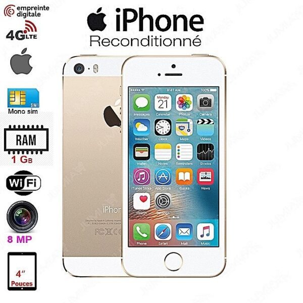 IPhone 5S – 4″ – 16 GO – IOS 7 – ISight 8 Mégapixels – Gold – Reconditionné – Garantysmart 3 Mois