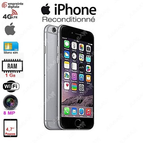 IPhone 6 – 4.7″ -4G – 64Go – 1Go – 8Mpx – Space Gray- Garantysmart 3 Mois