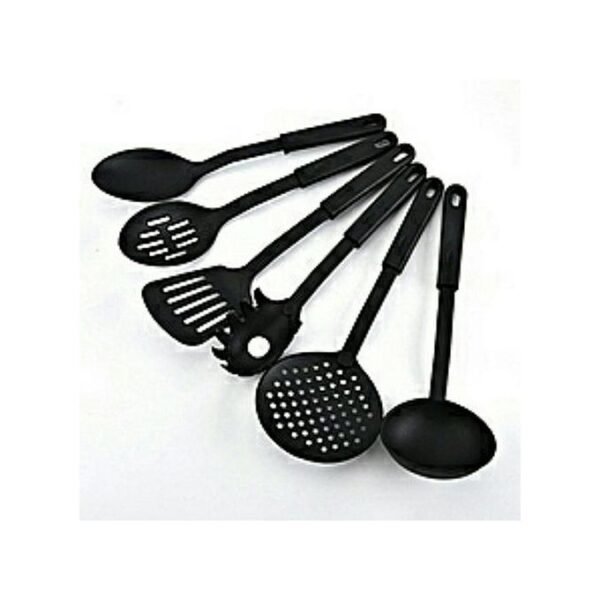 Lot de 6 Ustensiles de Cuisine1 louche, 1 écumoire, 1 spatule, 2 cuillères percées, 1 spatule à spaghettiCouleur : NoirConvient aux ustensiles de cuisine antiadhésifs Résistant à la chaleurDouxConfortable Poignées antidérapantes.