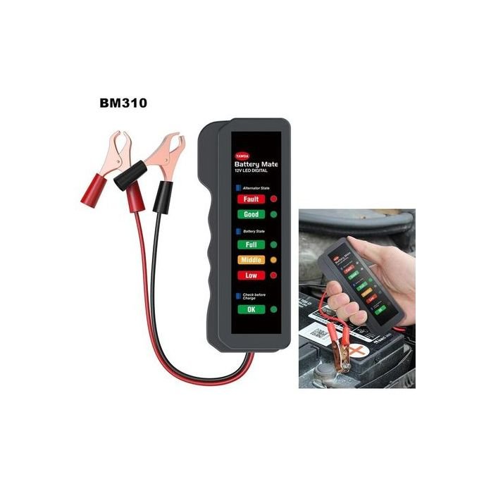 LED quantity: 6 (2 red, 3 green and 1 yellow)Material of wire: 0.06square millimeter copperMax. voltage and current: 12V 15ALength of wire: 25cm / 9.84inBattery tester size: 12 * 5.2 * 1.8cm / 4.7 * 2 * 0.7inFeatures: Portable Functions: Improve driving safety Material : Plastic, Copper