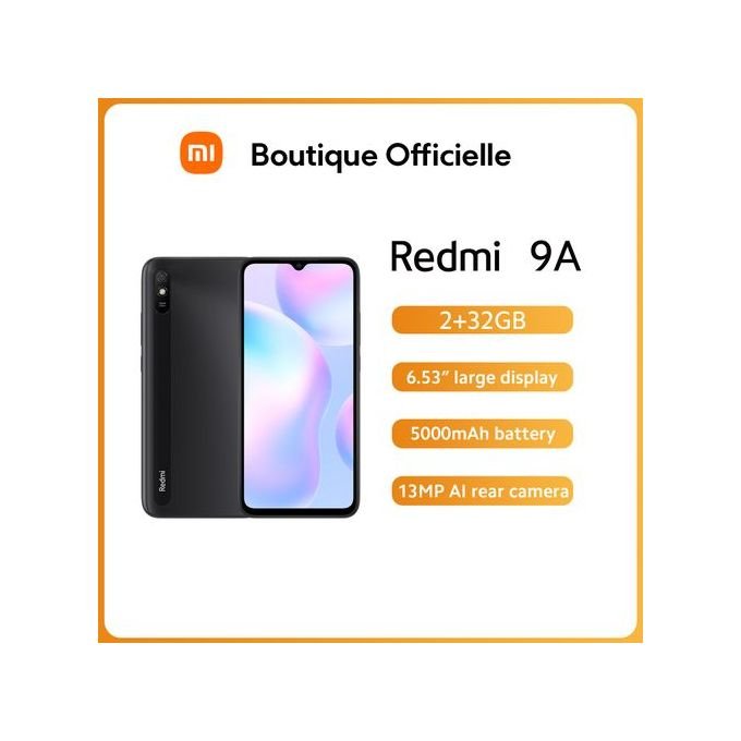 Redmi 9A – 2 Sim – 4G – 6.53 Pouces – 2Go Ram – 32Go Rom – 13Mpx – 5000mAh – Gris