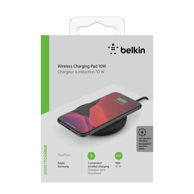 Recharge sans fil rapide (jusqu’à 10 W) pour tous les appareils compatibles QiChargeur compatible avec la plupart des coques de protection légèresTémoin lumineux LED pour vous indiquer que le téléphone est positionné correctement et qu’il recharge de façon optimaleChargeur à induction BOOST↑UP 10 WCâble USB-A vers micro-USB (1,2 m)Adaptateur secteur