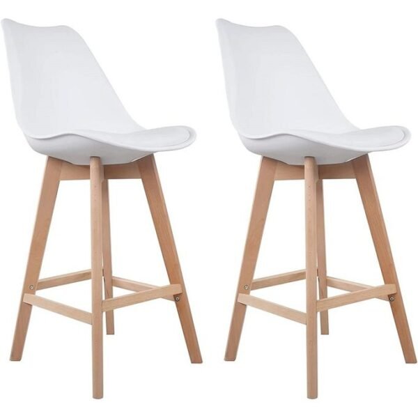 Lot de 2 Tabourets de Bar Style Scandinave OSLO – Pieds Bois Massif en Hêtre Assise Rembourrée en Simili Cuir Blanc