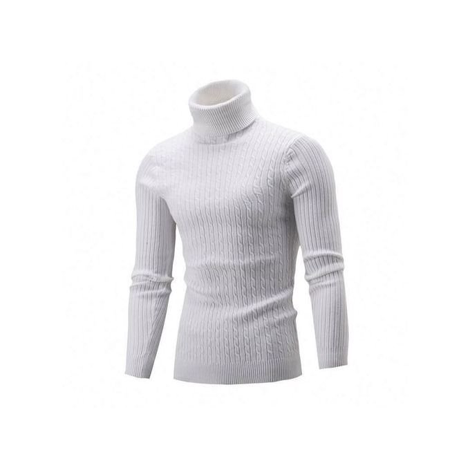 Pull à Col Roulé Pour Homme en Coton et Polyester Blanc